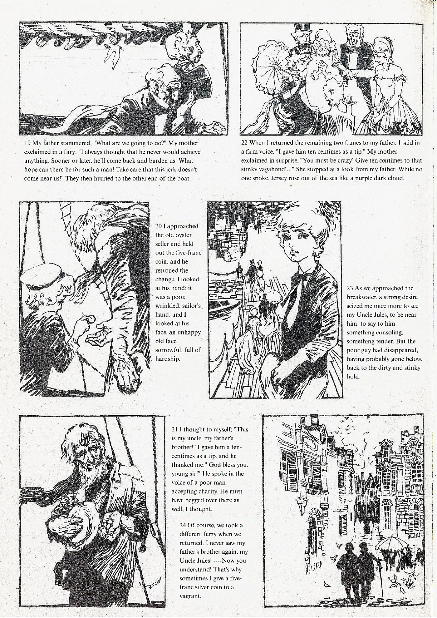 24 Of course, we took a different ferry when we returned. I never saw my father’s brother again, my Uncle Jules! —-Now you understand! That’s why sometimes I give a five-franc silver coin to a vagrant.